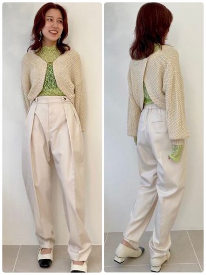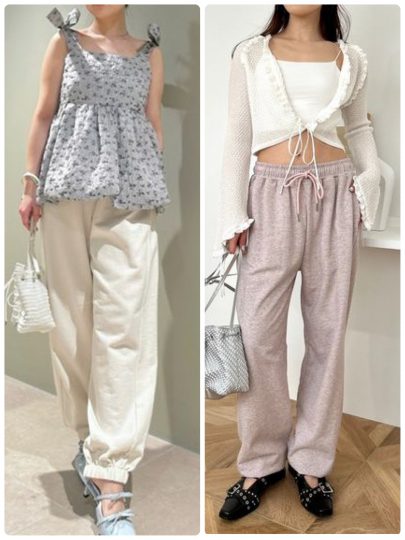 夏でも涼しいミニ裏毛のスウェットパンツ。素材の落ち感を活かしてカーブを描く柔らかな曲線が女性らしく、足元にくしゅっとたまる生地がニュアンスを演出。