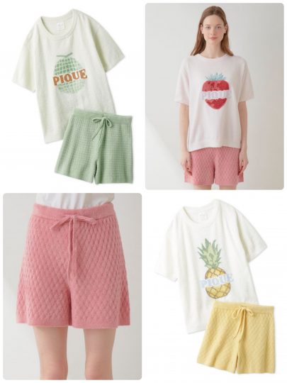とろけるような質感の”スムーズィー”素材を使用。プルオーバーのフルーツはジャガード編みで表現、昨年よりも薄手の素材にしているので猛暑も乗り切れそう!