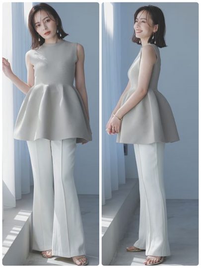 軽い着心地とウエスト下から広がるペプラムシルエットが特徴的なニットプルオーバー。