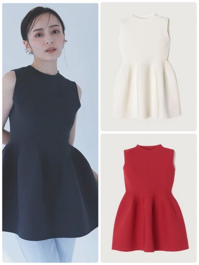 ホールガーメントペプラムノースリーブニット/ánuans