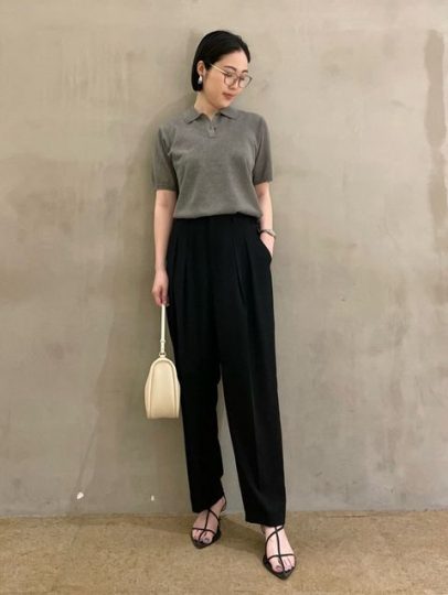 カジュアルの中にきらりと光るラメニットで、辛くなりすぎず女性らしい印象に。今季注目のポロニットを取り入れて、コーデの鮮度をUP。