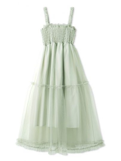 3枚のチュールを重ねてボリューム満点に仕上げたティアードワンピース。胸下から切り替えを加えて、背が低い方もスタイルアップできる仕様に。お腹を締め付けないのでマタママさんにもおすすめです♡裾の透け感がかわいらしさを後押しします。