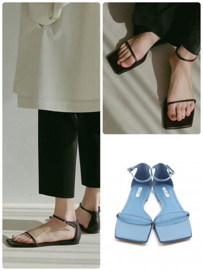 華奢なフロントストラップ&スクエアトゥが印象的