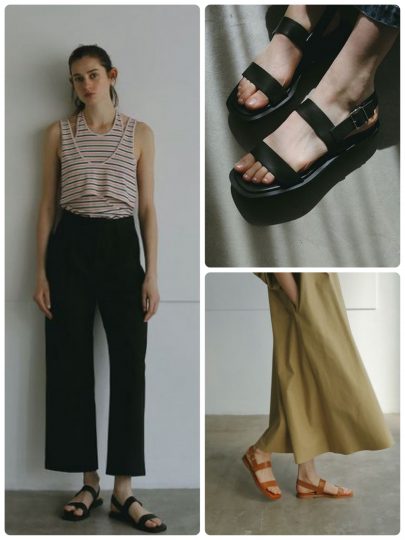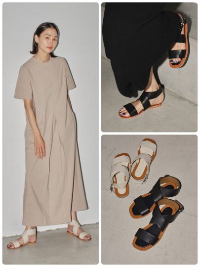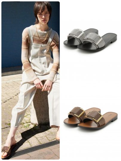 Mila Owenで昨年大好評だったメタルバックルデザインのサンダルを今季らしくアップデートしました。カジュアルな印象の強いフラットサンダルですが、しっかりとした存在感を放つメタルバックルを施したことできれいめやモードなスタイルとも好相性な仕様に。