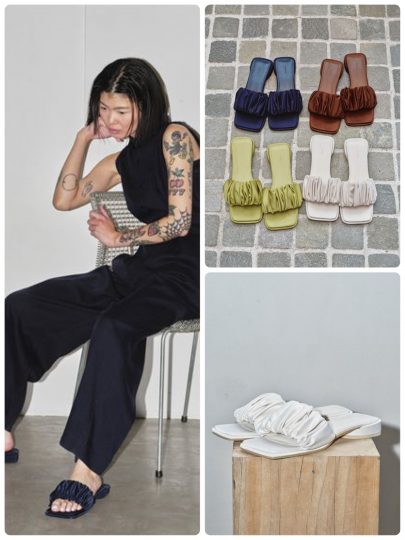 カラーはアイボリー、ミント、ダークブラウンの3色で36、37、38サイズを展開しています。