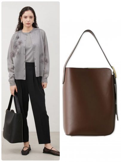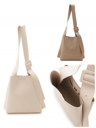 一見シンプルですが、マチにかけて幅広に仕上げたフォルムとバックル風ハンドルでこなれ感満載の仕様に。マグネットスナップで開け口がしっかり閉められるので防犯面でも安心です。