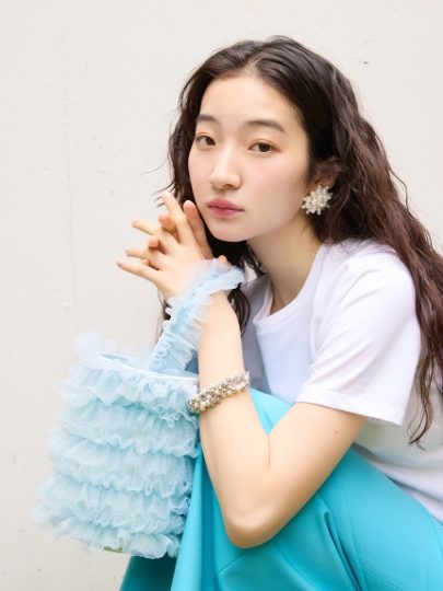 ラメ入りチュールのバケットバッグはデイリーはもちろん、ゆかたに合わせるのもおすすめ。落ち着いた色味を選んでも、さりげなくかわいらしさを放ちます♡