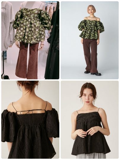 ボタンで袖の取り外しができ、パフスリーブ、オフショルダー、キャミソールと3WAYの着こなしが楽しめます!