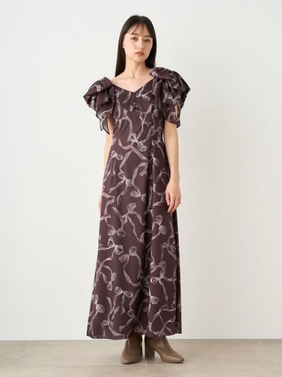 手書きタッチのロマンティックなリボン柄を全面に施したワンピが新登場。袖には立体感のあるリボンを加えて、愛らしく。おすすめの骨格タイプはストレート、ウェーブ、ナチュラルです。