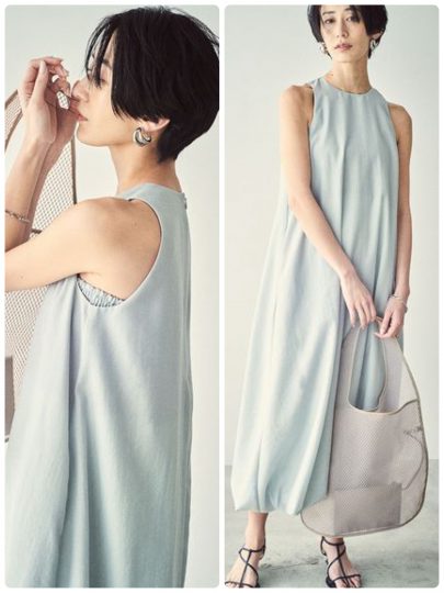 アメリカンスリーブとバルーンシルエットで鮮度の良さが光るワンピース。可愛さを引き算して、ヘルシーに見せてくれます。バベアトップ付きだから一枚で安心、夏に最適なさらっとした清涼感のある生地で快適に過ごせます。