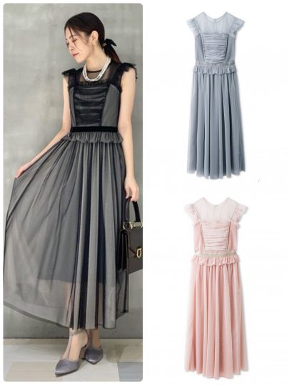 チュールレイヤードフリルドレス/リリーブラウン