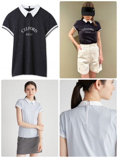 【CELFORD GOLF】 襟付きラインストーンプリントT