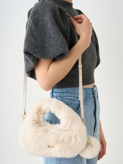 ふんわりとした手触りのフェイクファーで仕上げたラウンドバッグは、ファーのキーホルダーと一緒にお届け。バッグ本体にはブランドロゴを加えています。取り外しも長さ調節もできるショルダーストラップがついているのでコーディネートに合わせてアレンジ可能。バッグの内側にはカードを収納できるポケットつきです。