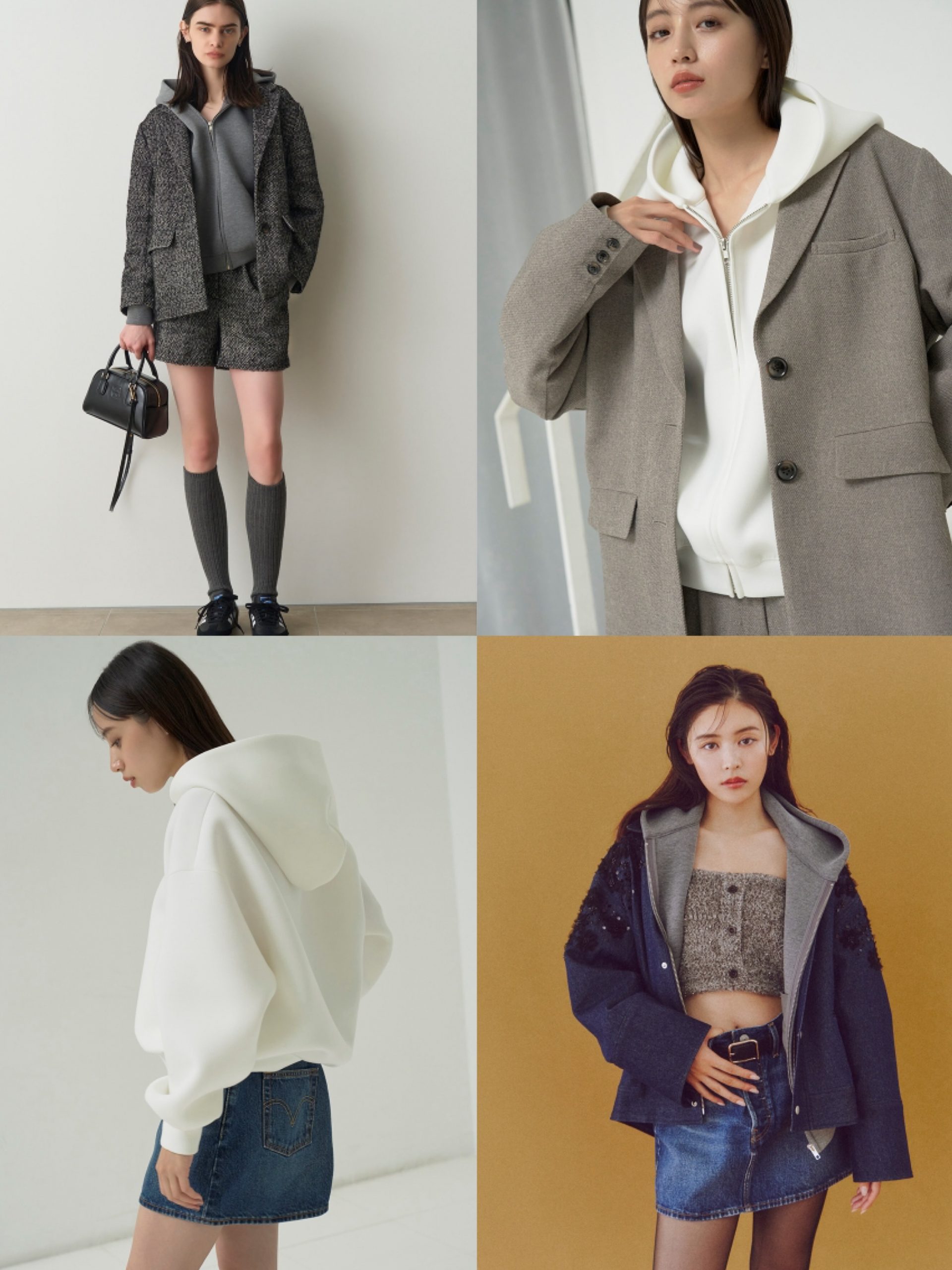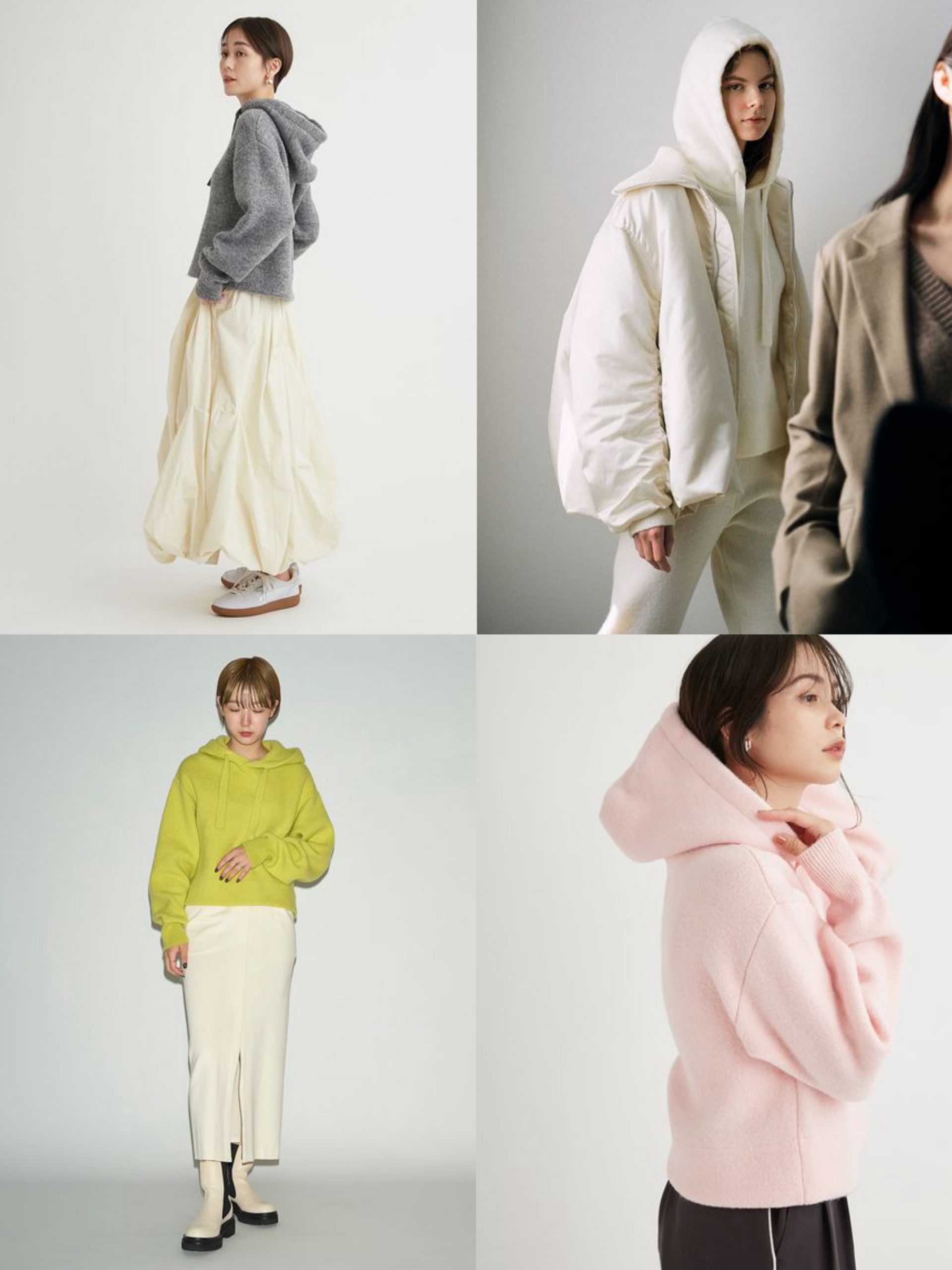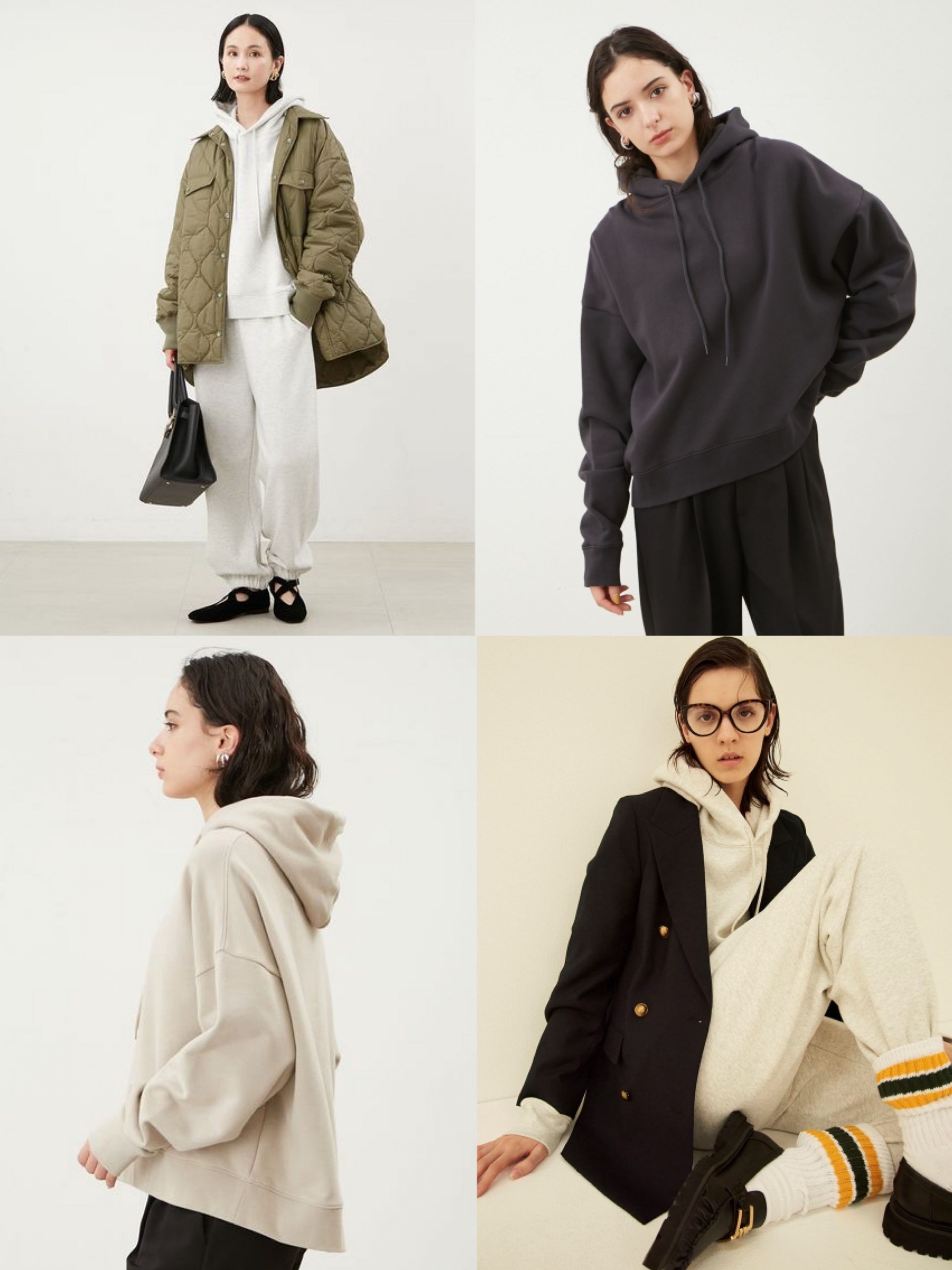 クロップド丈で女性らしいバランスで着られるので、普段パーカーが苦手な人でもトライしやすい。