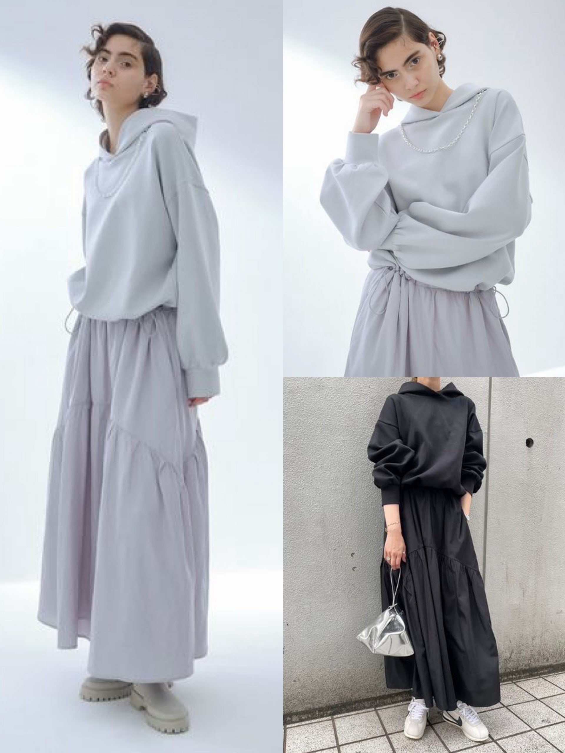 ドロスト付きのシャカシャカしたスカートとドッキング。