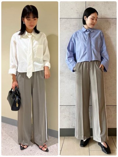 トレンド感満載なボウタイ付きクロップド丈シャツ。オックスフォード素材で大人トラッドな印象を与えます。シャツと同素材のボウタイは取り外し可能で、コーデの幅が広がります。スタッフが着ているようなトラックパンツを合わせれば、気分はKガール!