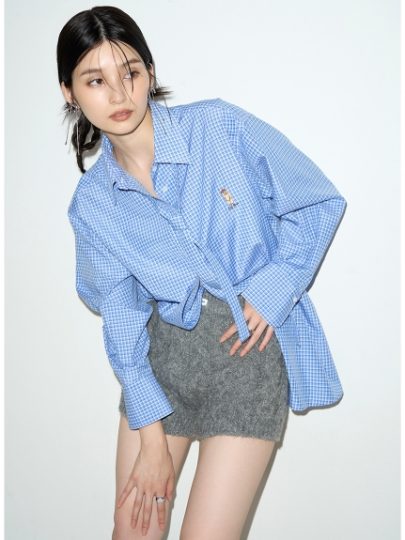 ニット帽を被った「Lily Bear」を胸に刺繍したボウタイ付きシャツ。羽織りとしてはもちろん、ミニワンピースとしても楽しめるオーバーサイズシルエットです。セットのボウタイはリボンにすればガーリーに、ネクタイにすればスクールテイストにと、トレンド感のある着こなしが楽しめます。シワになりにくく軽さのあるシャツ生地だから、晩夏から活躍してくれます。