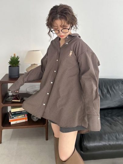 Lily Bearボウタイオーバーシャツ/lily Brown