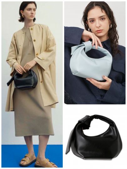 結び目をあしらったハンドルでほんのりモードな雰囲気に。ころんとしたフォルムが見た目以上の収納力。
