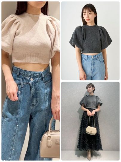 袖にボリュームがあるぶん、身頃はタイトめ×クロップド丈に仕上げてメリハリをON。取り入れるだけで今年らしさを演出できる優れものでもあるんです。
