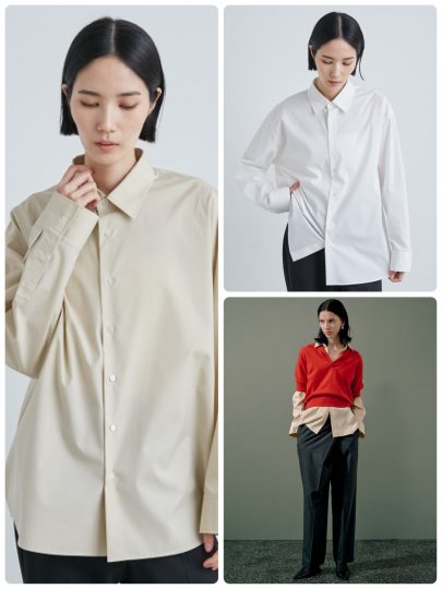 羽織、トップスとして着回しがきくベーシックなシャツは抑えておきたいところ。ボディラインを拾わないシルエットでありながらも、オーバーすぎないのでレイヤードもしやすくて便利です。カジュアルからきれいめコーデまで使える万能アイテム。