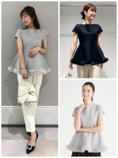 胸下から切り替えを加えて、エレガントなフレアシルエットでお作りしたプルオーバー。裾にはファーをくるりとトリミングし、秋らしさをプラスしました。お腹まわりをカバーしつつ、同時に上品さも高めてくれる逸品です。涼しげなキャップスリーブだから、まだまだ暑い今の時期から活躍。