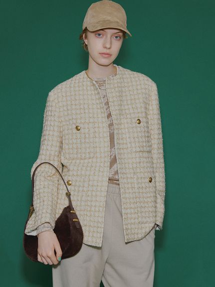 金釦パッチポケットルーズツイードジャケット¥20,900/MilaOwen