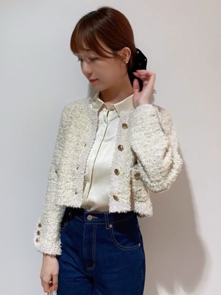 フリンジツイードノーカラージャケット¥23,980/LILY BROWN