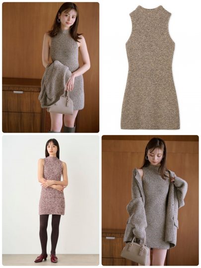 ざっくり感のある肉厚なリブ編みで、ウエストをほどよくタイトに。ノースリーブなのでスッキリ、ヌケ感◎