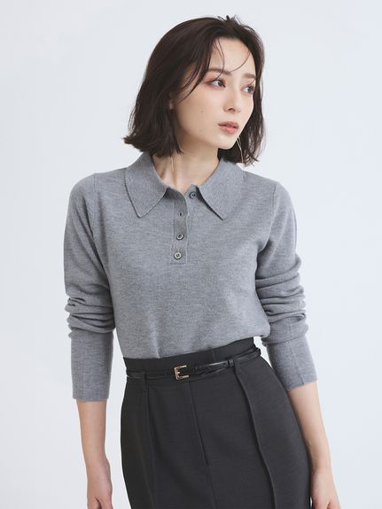 程よくピッタリなサイズ感のアニュアンスのウールニットポロシャツ。タイトスカートやタックパンツにインして、ベルトを付けたコンサバなスタイルも素敵に決まります。ウールニットポロシャツ/アニュアンス