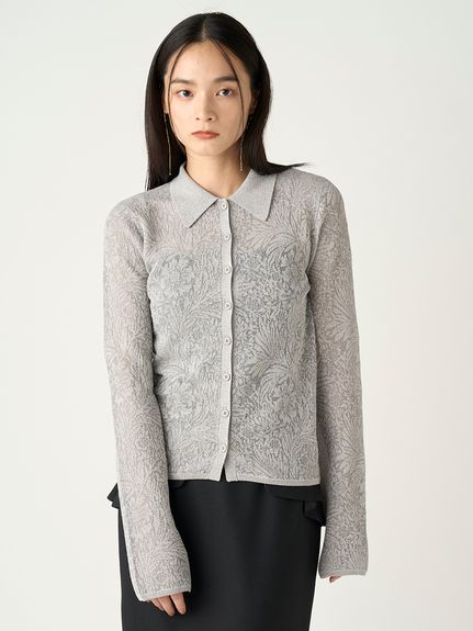 William Morisの柄を入れ込んだ、FRAY I.Dのコラボジャガードニット。こちらもシアーな素材なので、女性らしく着用できます。【William Morris®】ジャガードニットプルオーバー/フレイアイディー