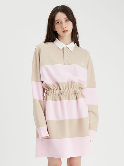 ラガーシャツはスカートと相性がいいということで、こちらはすでにワンピースになっているデザイン。ウエスト部分のスピンドルゴムで、女性らしいシルエットに調整できるタイプです。再販熱烈希望。ラガーカットワンピース/FURFUR