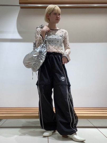 シンプルで合わせやすい形のバンドゥの胸元にブランドロゴをプラス。主張控えめなロゴなのでどんなコーデにもすんなりなじみます。また肩紐は取り外しができるので、レイヤードするアイテムによって調整可能。背面は透け感のあるメッシュ素材で切り替えています。