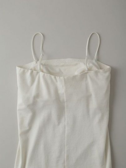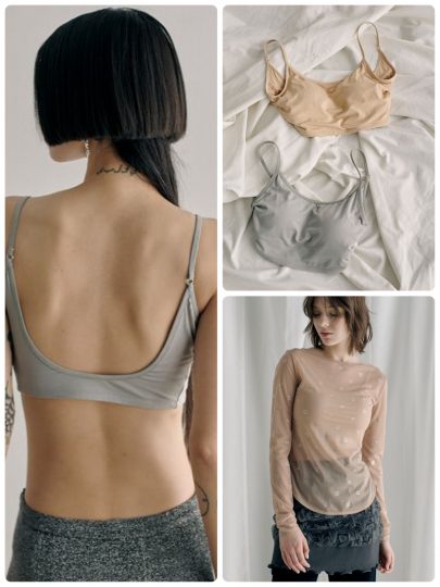 大胆に開けたバックデザインがポイントで、背中開き&シアートップスのインナーとして大活躍。ストレッチ性のある生地で着心地の良さも満点です。
