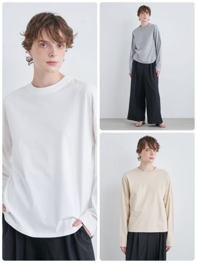 トレンドに左右されず、ベーシックに使えるロンTは確実に重宝するはず。程よく厚みのあるしっかりとした生地もポイントです。メインとしてはもちろん、スウェットなどのインナーにも◎。