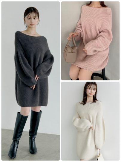 毎シーズン人気のラクーンミニニットワンピースが、今期らしいトレンドカラーを加えて到着。広めのボートネックで、オフショル・ワンショルでも着られるリラクシーなシルエットが人気の1着です。起毛感のあるふんわりとした素材感は、肌触り柔らか。丸みのあるコクーンシルエットは、1枚でさらっとロングブーツに合わせたり、フレアスカートを合わせてレイヤードしても可愛い。