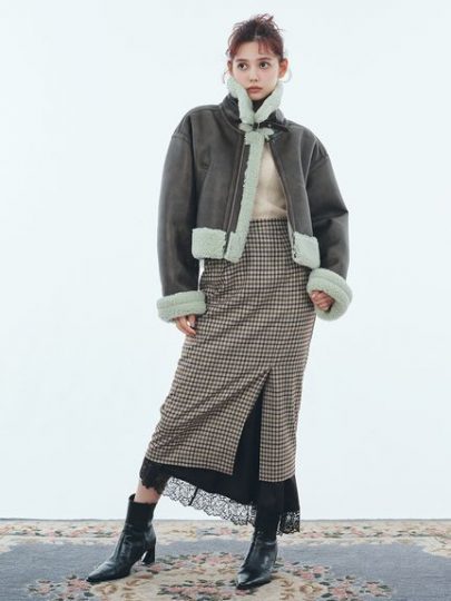 ミニマルなタイトスカートに、繊細なレースのペチスカートを重ねたレイヤードスカート。ペチスカートは他のアイテムとのレイヤードにも使用でき、コーディネートの幅が広がります。モード&ロマンティックな雰囲気で、ロングブーツともバランスよくコーディネートできます。
