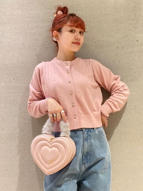 まさに春のお花を連想させる明るいベビーピンクのカーディガン。デニムでカジュアルさを出して甘すぎないスタイリングがオススメです。