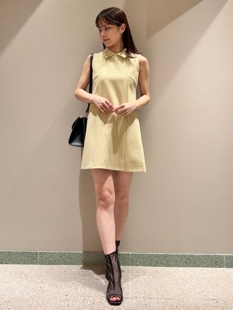 夏にサラッと着たいミルキーイエローのワンピース。小物はブラックでまとめてガーリーさを抑えたスタイリングがオススメです。メッシュのショートブーツでクールレディな印象に。