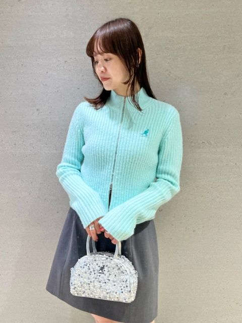 目を引く爽やかなミントブルーのニットカーディガン。秋のスタイリングも明るいカラーが似合うイエベ春の方に是非着てほしいアイテムです。