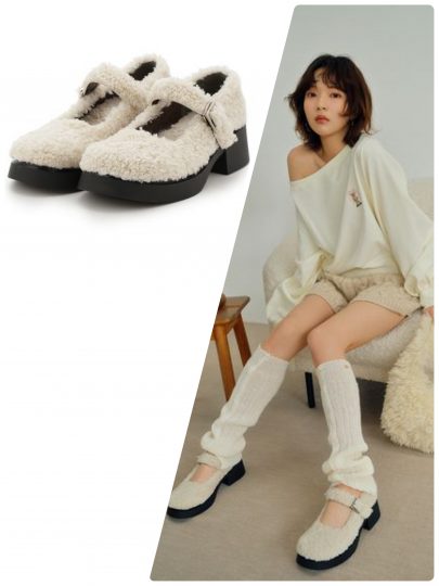 ボリュームのあるラウンドトゥで甘さ控えめにデザインしたメリージェーンパンプス。印象的な厚底ソールは、足元に重さを出したいコーディネートにぴったり。ソックス合わせでガーリーに、ワイドパンツ合わせでモードにと様々なスタイリングにあわせやすいのもこだわりです。もこもこボアのアイボリーは、大人の女性にハマる可愛らしさ。
