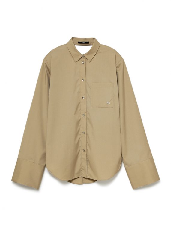 フロントはシンプル、バックは大胆なレースアップシャツ