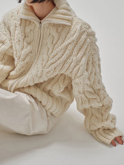 TODAYFUL人気の、ケーブルニットが、今年らしいジップタイプで登場。ふんわりとした風合い、高級感のある編み立て、どれをとってもパーフェクトに可愛いニット。 Volume Handknit Cardigan /TODAYFUL