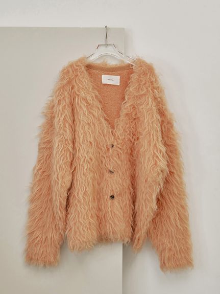数種類の糸で編み込まれているという、華やかなふわふわカーディガン。冬でも中にタンクなどを仕込んで、抜け感たっぷりに着こなしたい。Brashed Mix Cardigan /TODAYFUL