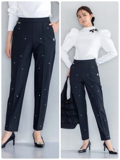 ドット刺繍雨よけウォームパンツ(Zinnia)/Ame no chi Hare