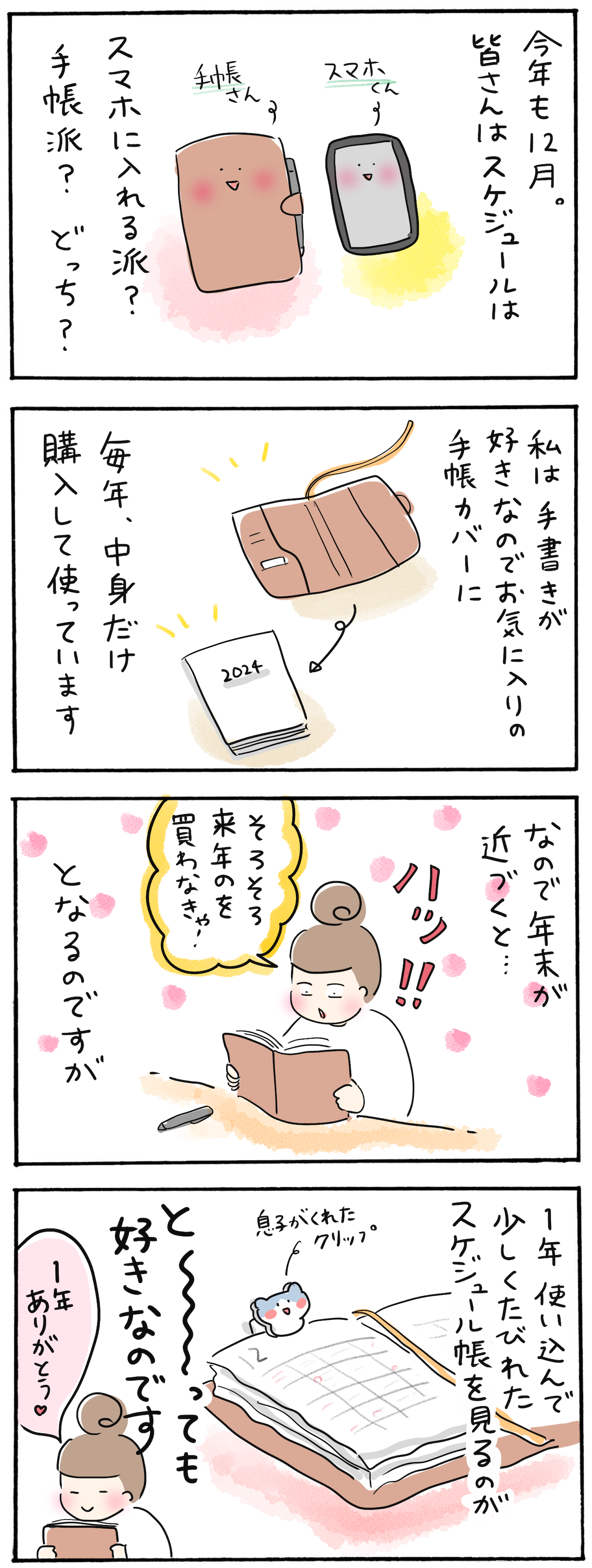手帳に書き込むのが大好きだし、1年終わる頃には色々書き込んでシワッとなった手帳をムルのが好きなんですよね〜。