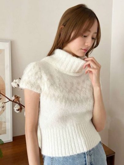 ノースリーブのオフタートルニットに、アンサンブルで着られるV開きのカーディガンをプラスした、うれしい2点セット。ふわふわと起毛感のあるニット素材は、見た目も着心地もあたたかです。さらに、繊細なラメ糸を引き揃えて編み立てているので、上品な華やかさもプラス!