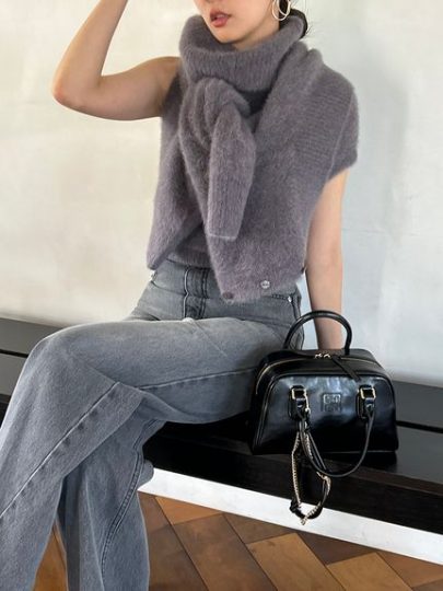 フォックスアルパカの毛足が長くふんわりとした生地は、軽やかで肌触り抜群! ボリュームのあるルーズネックで顔まわりを華やかに、同素材のカーディガン とセットで着ることで、よりコーディネートが品よくまとまります。