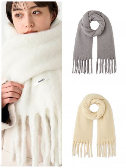 ふんわりした起毛加工の生地と長めのフリンジでボリューム満点!首元にくるっと巻きつけたら、簡単に小顔見せが叶います。自然に顎や輪郭をカバーできるのがうれしいポイント。