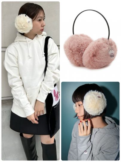 輪郭とふわふわファーのイヤマフを対比させれば即小顔に